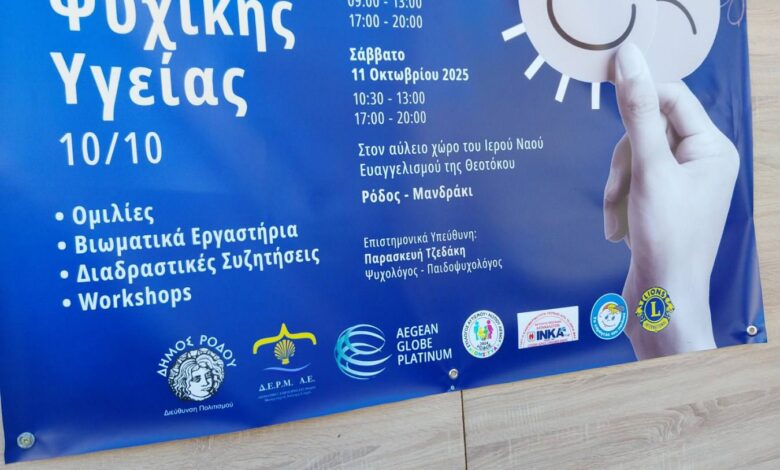«Ψυχική Υγεία για Όλους»: Με επιτυχία και μεγάλη συμμετοχή ολοκληρώθηκε το διήμερο εκδηλώσεων ενημέρωσης και ευαισθητοποίησης στη Ρόδο