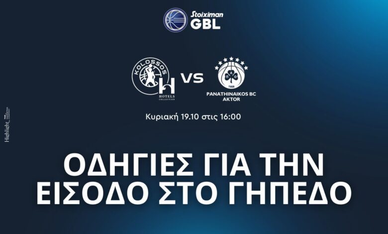 Η Κ.Α.Ε. Κολοσσός ενημέρωσε τον φίλαθλο κόσμο για την είσοδο του στο κλειστό γυμναστήριο της Καλλιθέας, στο παιχνίδι της Κυριακής με τον Παναθηναϊκό. Αναλυτικά, η ανακοίνωση: “Εν όψει του αγώνα με τον Παναθηναϊκό την Κυριακή 19 Οκτωβρίου στις 16:00, παρακαλούμε όλους τους φιλάθλους να ακολουθήσουν προσεκτικά τις παρακάτω οδηγίες για την ομαλή προσέλευση και είσοδο στο γήπεδο.