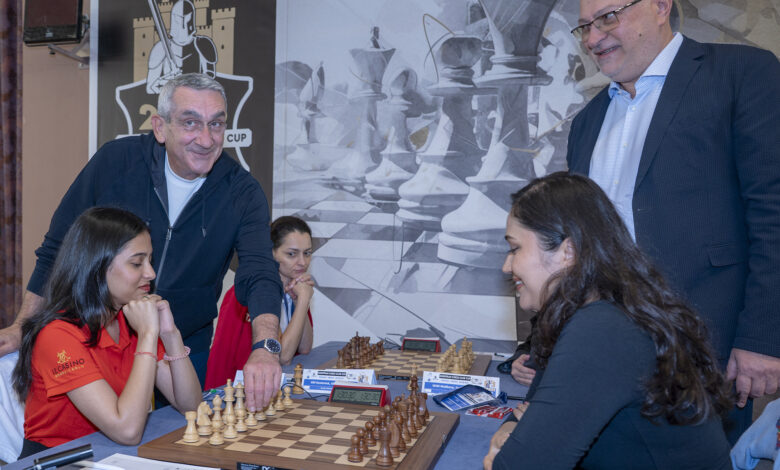 Στον πρώτο γύρο των αγώνων συμμετείχαν, ο Πρόεδρος της Ευρωπαϊκής Σκακιστικής Ένωσης Zurab Azmaiparashvili, ο Περιφερειάρχης Νοτίου Αιγαίου κ. Γιώργος Χατζημάρκος και ο Πρόεδρος της Ελληνικής Σκακιστικής Ομοσπονδίας κ. Στάθης Ευσταθόπουλος, οι οποίοι έκαναν τις πρώτες εθιμοτυπικές κινήσεις στους αγώνες, μεταξύ των FM Bart Gijswijt και GM Shakhriyar Mamedyarov, GM Divya Deshmukh και IM Gulrukhbegim Tokhirjonova και στον αγώνα γυναικών μεταξύ της IM Σταυρούλας Τσολακίδου και της WFM Anusha Subramanian.