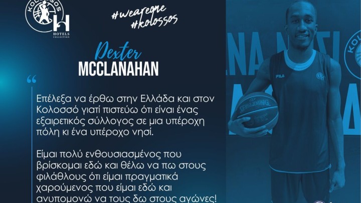 Την πρώτη του δήλωση ως αθλητής του Κολοσσού H Hotels Collection έκανε ο Ντέξτερ ΜακΚλάναχαν μέσω της επίσημης ιστοσελίδας της ομάδας (kolossosbc.gr), αναφέροντας τα παρακάτω: