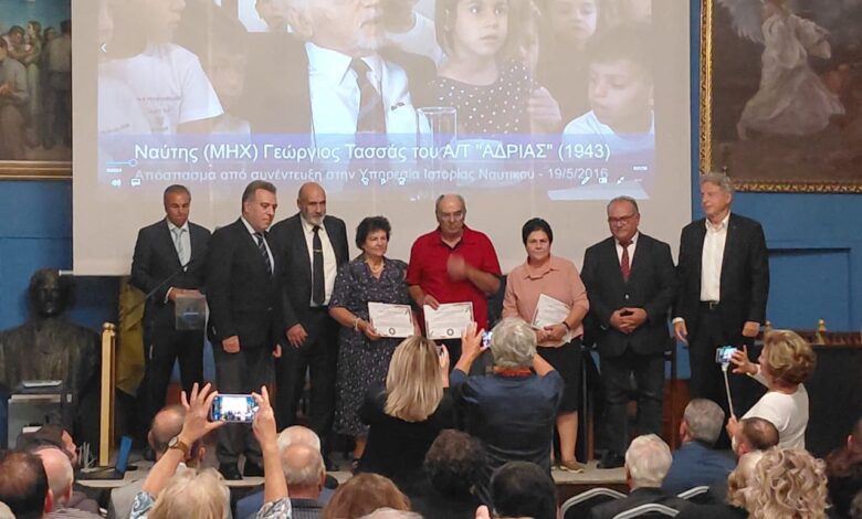 Ξεχωριστή σημασία είχε η απονομή τιμητικής διάκρισης σε απογόνους δύο Καλυμνίων ναυτών του πληρώματος του αντιτορπιλικού “Αδρίας”.
