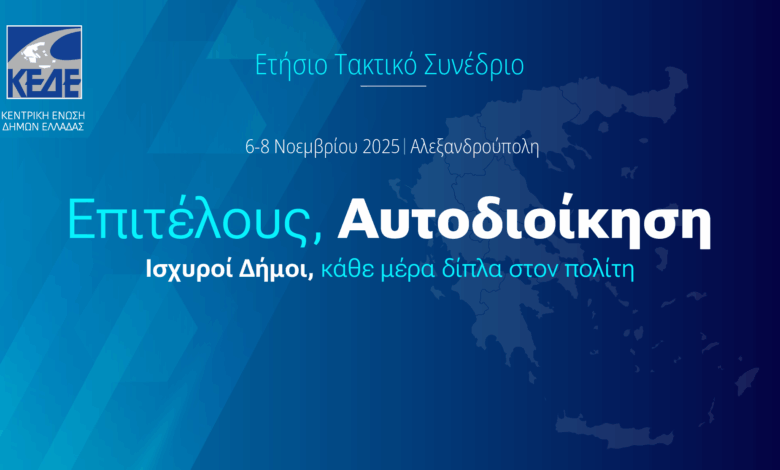 Το συνέδριο της ΚΕΔΕ γίνεται με τη συμμετοχή δημάρχων, αυτοδιοικητικών στελεχών, εκπροσώπων της κυβέρνησης και θεσμικών φορέων.