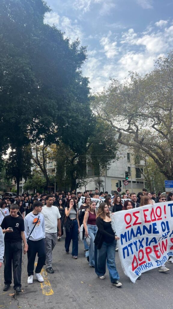 «Εδώ στη Ρόδο, δεν υπάρχουν χώροι για τα εργαστήρια, δεν υπάρχουν υπάλληλοι, ούτε καν αναλώσιμα για τους καθηγητές. Μιλάνε για αιώνιους φοιτητές. Εμείς απαντάμε ότι είμαστε αβοήθητοι, σε ένα πανεπιστήμιο το οποίο δεν έχει καμία στήριξη στη φοιτητική του μέριμνα. Δεν υπάρχουν οι φοιτητικές εστίες για να καλύψουν τις ανάγκες στέγασης. Και με το νέο νόμο, τσουβαλιάζονται όλοι οι φοιτητές…  Γιατί υπάρχουν και οι φοιτητές που παλεύουν να ζήσουν, με ενοίκιο 500 και 600 ευρώ  που δουλεύουν όλη μέρα για να βγάλουν τα έξοδα τους και χάνουν τα εργαστήρια, χάνουν μαθήματα και μένουν πίσω στις σπουδές τους»