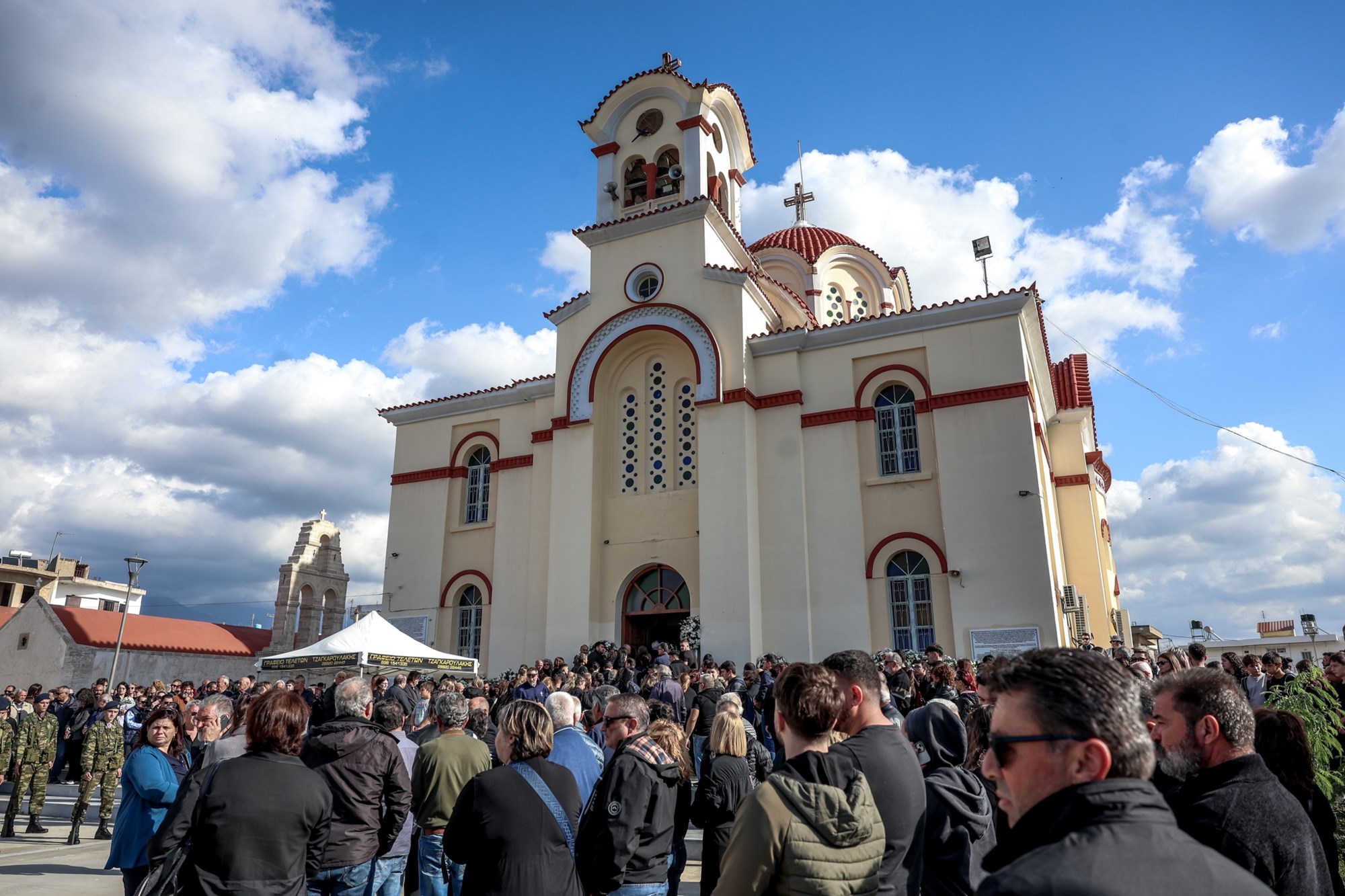 Η κηδεία του άτυχου 19χρονου στρατιωτικού που πέθανε από χειροβομβίδα τελείται στον τόπο καταγωγής του, το Τυμπάκι Κρήτης.
