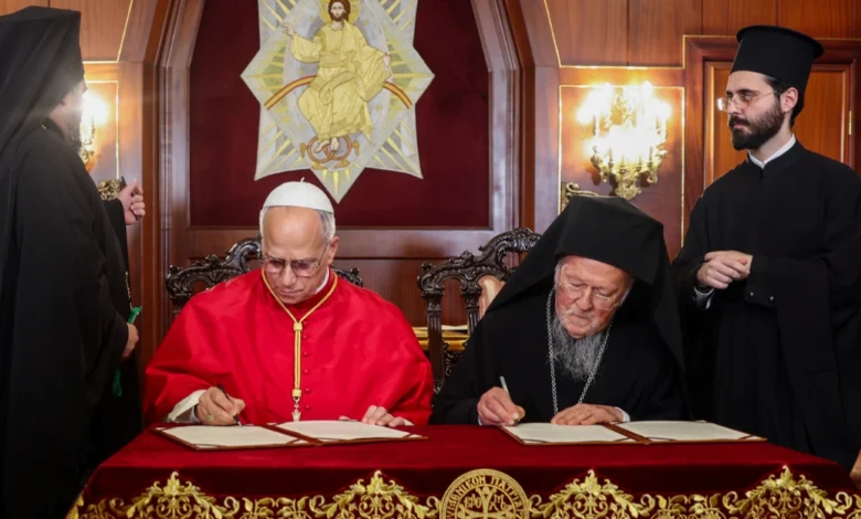 Υπεγράφη η Κοινή Δήλωση Πάπα Λέοντος και του Πατριάρχη Βαρθολομαίου  μετά την Δοξολογία στον Άγιο Γεώργιο: Η θρησκεία δεν μπορεί να χρησιμοποιείται για να δικαιολογηθεί η βία –  Ο στόχος της ενότητας των Χριστιανών περιλαμβάνει τον σκοπό της συνεισφοράς, αναφέρουν
