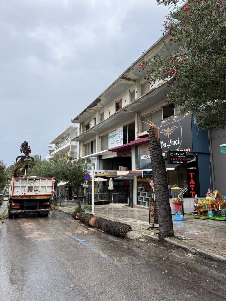 Τα σημαντικότερα προβλήματα εστιάζονται στο ξερίζωμα δέντρων και στις πτώσεις κλαδιών στην πόλη της Ρόδου και σε διάφορες περιοχές του νησιού μας που προκάλεσαν υλικές ζημιές και διακοπή της κυκλοφορίας. Οι παρεμβάσεις των αρμόδιων υπηρεσιών του Δήμου, της Περιφέρειας και της ΠΥΡ είναι συνεχείς για την διαχείριση της κατάστασης.