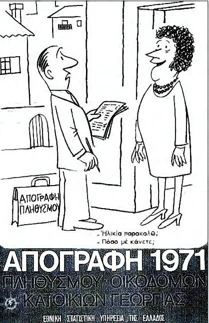 Μια δεκαετία μετά, το 1961, πραγματοποιείται για πρώτη φορά δοκιμαστική απογραφή και δειγματοληπτική έρευνα κάλυψης, εισάγοντας νέες μεθόδους ελέγχου και αξιολόγησης των δεδομένων, ενώ το 1971, ειδικές ομάδες απογραφέων απέγραψαν όσους ταξίδευαν με πλοίο, σιδηρόδρομο ή αεροπλάνο, αρκεί να βρίσκονταν σε ελληνικό έδαφος τη μέρα της απογραφής. Μια καινοτομία που στόχευε σε πλήρη αποτύπωση του πληθυσμού!