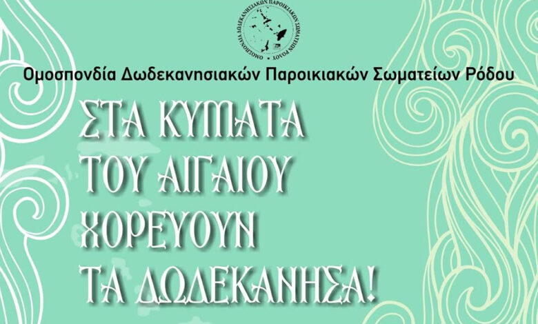 Η Ομοσπονδία Δωδεκανησιακών Παροικιακών Σωματείων Ρόδου ανακοινώνει τη διοργάνωση χοροεσπερίδας ,αφιερωμένης στα νησιά και στις παραδόσεις των Δωδεκανήσων. Μια βραδιά γιορτής, μουσικής και παράδοσης, όπου ο χορός και το κέφι θα μας ταξιδέψουν στα κύματα του Αιγαίου.