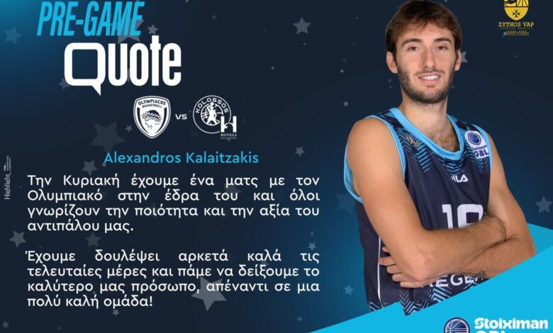 Την άποψή του για την εκτός έδρας αναμέτρηση του Κολοσσού H Hotels Collection με τον Ολυμπιακό (21/12, 13:00), για την 11η αγωνιστική της Stoiximan GBL, μοιράστηκε ο Αλέξανδρος Καλαϊτζάκης.