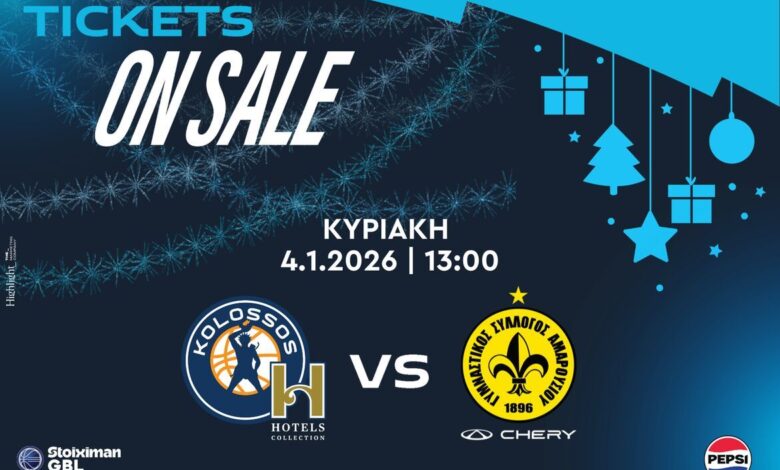 Η ΚΑΕ Κολοσσός H Hotels Collection ανακοινώνει την έναρξη της πώλησης των εισιτηρίων του αγώνα με το Μαρούσι Chery για την 13η αγωνιστική της Stoiximan GBL 2025-2026.