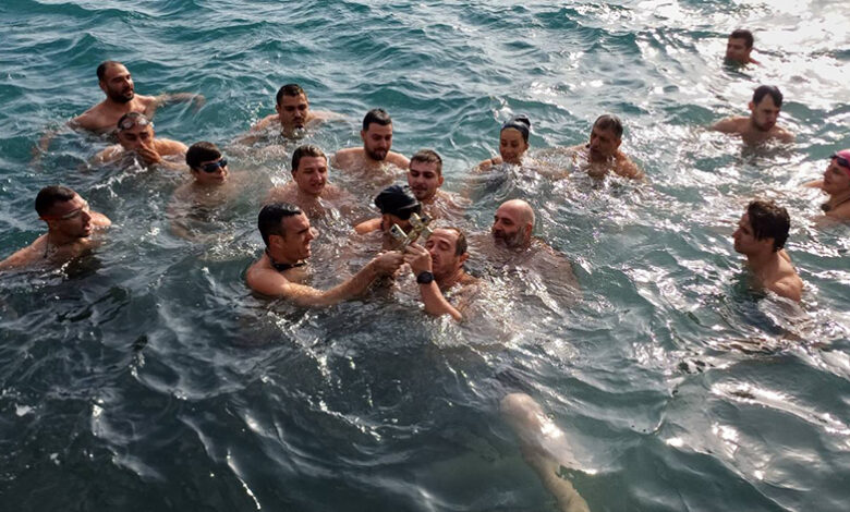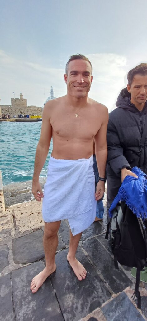 Μόλις ο Σεβασμιότατος Μητροπολίτης Ρόδου κ. Κύριλλος έριξε τον Τίμιο Σταυρό στη θάλασσα, βούτηξαν 17 κολυμβητές,