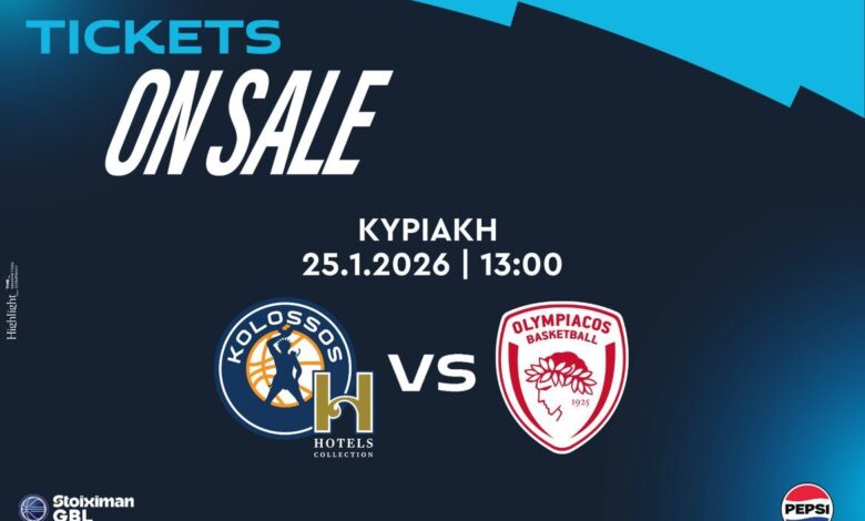 Η ΚΑΕ Κολοσσός H Hotels Collection ανακοινώνει την έναρξη της πώλησης των εισιτηρίων του αγώνα με τον Ολυμπιακό για την 16η αγωνιστική της Stoiximan GBL 2025-2026.