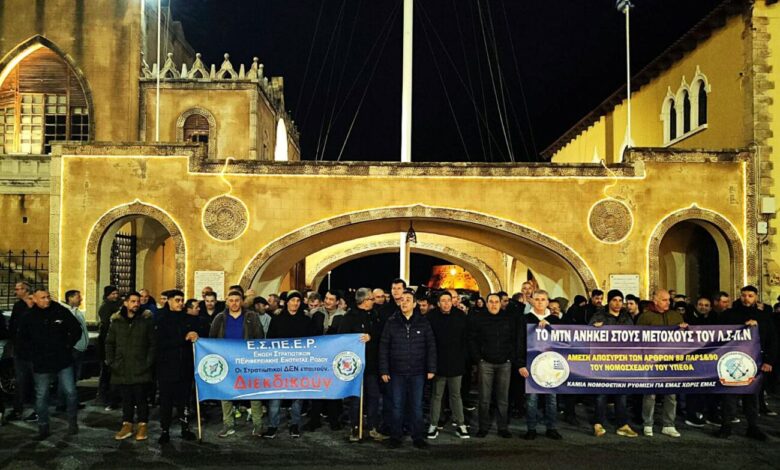 Το Εργατικό Κέντρο Ρόδου εκφράζει την αμέριστη συμπαράστασή του στην Ένωση Στρατιωτικών Περιφερειακής Ενότητας Ρόδου και στα εν ενεργεία στελέχη των Ενόπλων Δυνάμεων που υπηρετούν στα Δωδεκάνησα, με αφορμή τη δυναμική και απολύτως δικαιολογημένη διαμαρτυρία της 08ης Ιανουαρίου 2026 ενάντια στο πολυνομοσχέδιο του Υπουργείου Εθνικής Άμυνας.