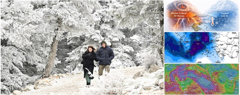 “Από την Τρίτη το μεσημέρι και έπειτα, αλλάζει η “ποιότητα” του καιρού, γιατί θα μας επηρεάσει ένα βαρομετρικό χαμηλό που θα αλληλεπιδράσει με τον εγκλωβισμένο ψυχρό αέρα και άρα θα υπάρξει αυξημένη πιθανότητα για ισχυρές βροχές – καταιγίδες (κεντρικά – νότια, συμπεριλαμβάνεται και η Αττική) και πολύ πυκνά χιόνια στα ορεινά, με τις χιονοπτώσεις να εκδηλώνονται και σε ημιορεινά τμήματα της Κεντρικής Ελλάδας αλλά και σε σχεδόν πεδινές περιοχές της Βόρειας χώρας”, αναφέρει ο Γιάννης Καλλιάνος.
