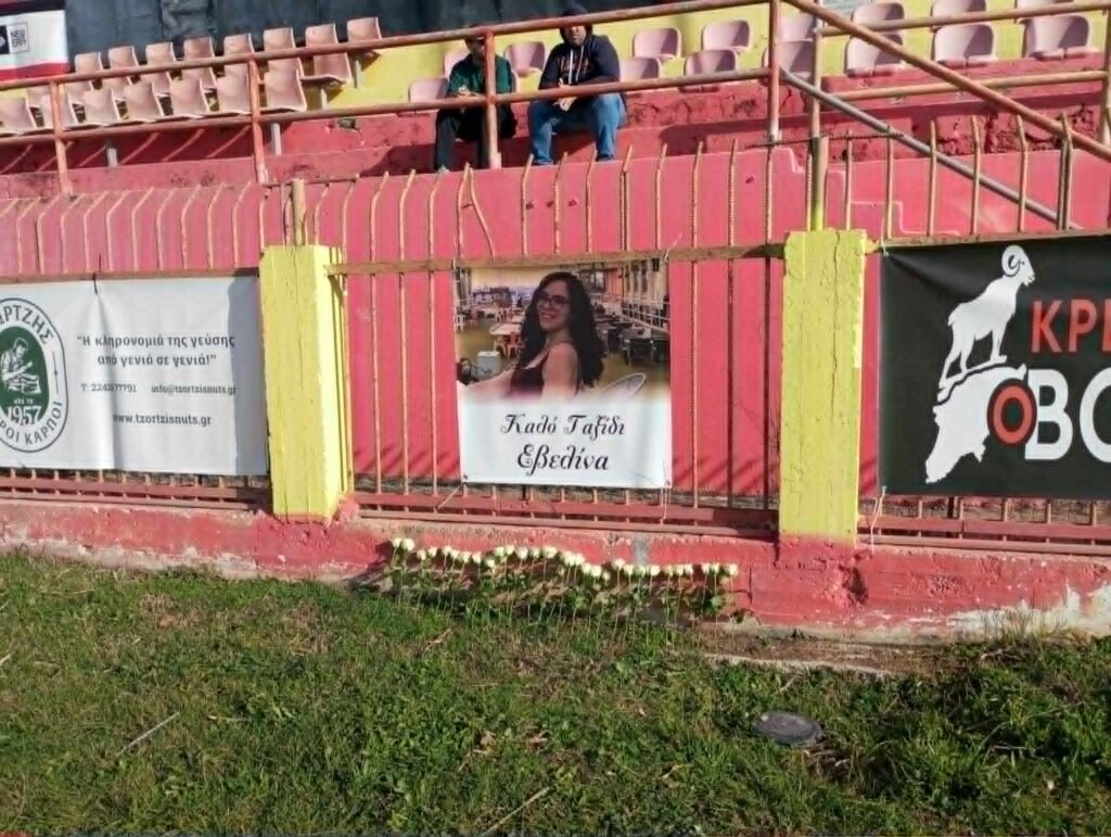 Οι ποδοσφαιριστές των δύο ομάδων αποθέωσαν λευκά τριαντάφυλλα στο σημείο της εξέδρας που είχε αναρτηθεί πανό με τη φωτογραφία της.