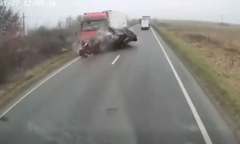 Το βανάκι, κατά τις ίδιες πληροφορίες, μετέφερε δέκα άτομα, με το σοκαριστικό βίντεο από οδηγό που βρισκόταν ακριβώς από πίσω να δείχνει τον οδηγό του βαν να χάνει προς στιγμήν τον έλεγχο του αυτοκινήτου και να πέφτει πάνω στο φορτηγό που κινούνταν στο αντίθετο ρεύμα.
