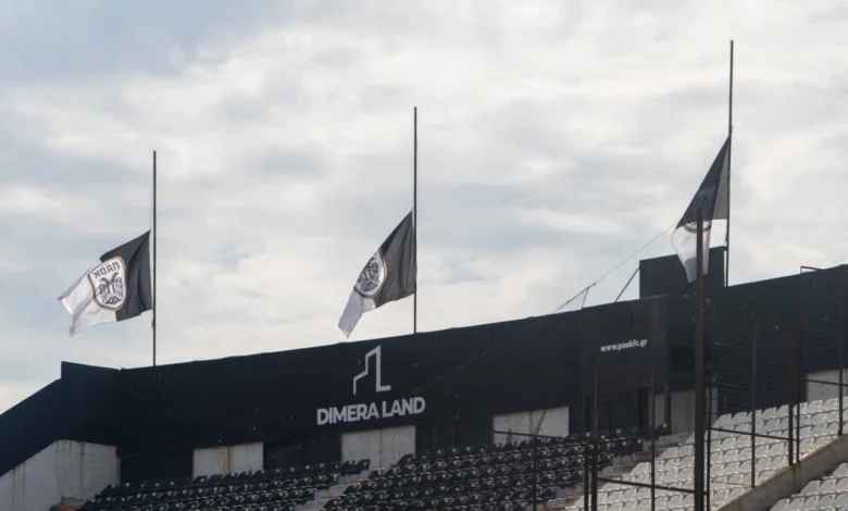 Οι σημαίες στην Τούμπα κυματίζουν μεσίστιες για τα επτά αετόπουλα του ΠΑΟΚ.