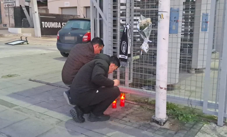 Κεριά και λουλούδια έξω από το γήπεδο της Τούμπας στη Θεσσαλονίκη αφήνουν περαστικοί, μετά την τραγική είδηση για τον θάνατο 7 οπαδών του ΠΑΟΚ σε τροχαίο σε αυτοκινητόδρομο στην Ρουμανία, ενώ μετέβαιναν στη Γαλλία για τον αγώνα της αγαπημένης τους ομάδας με τη Λυόν.