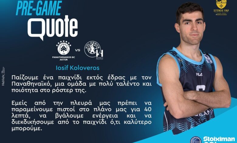 Την άποψή του για την εκτός έδρας αναμέτρηση του Κολοσσού H Hotels Collection απέναντι στον Παναθηναϊκό AKTOR (15/2, 16:00), για τη 19η αγωνιστική της Stoiximan GBL, μοιράστηκε ο Ιωσήφ Κολοβέρος.