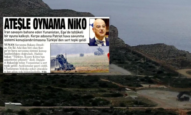 Αναφορά στον Έλληνα υπουργό Άμυνας, Νίκο Δένδια κάνει η τουρκική εφημερίδα Sabah η οποία κυκλοφορεί σήμερα με τον τίτλο «Μην παίζεις με τη φωτιά, Νίκο», αποτυπώνοντας την έντονη ενόχληση της Άγκυρας στη μεταφορά συστοιχίας πυραύλων του αντιαεροπορικού συστήματος Patriot στην Κάρπαθο.