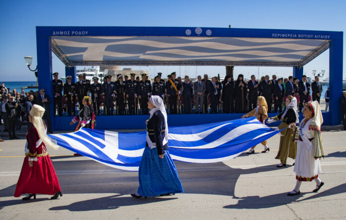 - Εκφώνηση πανηγυρικού από το πρόεδρο της Ομοσπονδίας των Δωδεκανησιακών Παροικιακών Σωματείων Ρόδου κ. Κωνσταντινίδη Νικόλαο.
