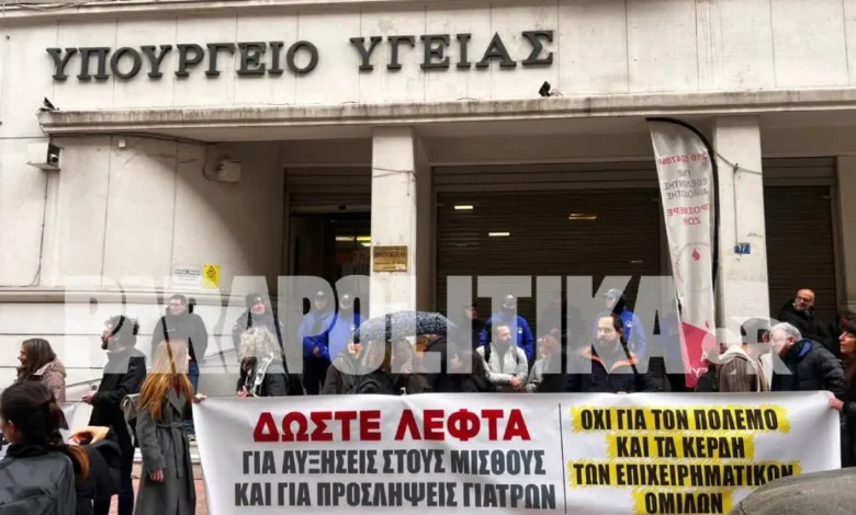 Για ουσιαστικές αυξήσεις στους μισθούς μας, για μαζικές μόνιμες προσλήψεις γιατρών και όλου του αναγκαίου μόνιμου προσωπικού, πλήρους και αποκλειστικής απασχόλησης. Πληρώσαμε, όπως και όλος ο λαός, τα σπασμένα της καπιταλιστικής κρίσης, πληρώσαμε τα σπασμένα της καπιταλιστικής ανάπτυξης. Δεν θα πληρώσουμε τα «σπασμένα» της πολεμικής οικονομίας και της βαθύτερης εμπλοκής της χώρας μας στους επικίνδυνους σχεδιασμούς ΝΑΤΟ-Ε.Ε.-Ισραήλ για τις μπίζνες των επιχειρηματικών ομίλων, των εφοπλιστών που βλέπουν τα ναύλα τους να εκτοξεύονται και παίζουν κορόνα-γράμματα τις ζωές των ναυτεργατών, για τα χρυσά συμβόλαια των πολεμικών βιομηχανιών, για τους κατασκευαστικούς ομίλους που προσβλέπουν σε αύξηση των κερδών τους από τη συμμετοχή τους στην αιματοκυλισμένη Γάζα από το κράτος-δολοφόνο του Ισραήλ.