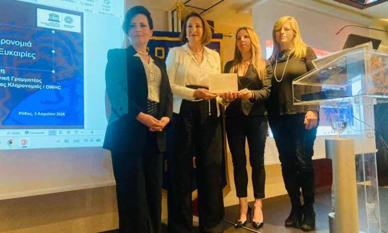 Με ιδιαίτερη επιτυχία, λαμπρότητα και έντονο συμβολισμό πραγματοποιήθηκε την Παρασκευή 3 Απριλίου 2026 στο ξενοδοχείο Mediterranean, η πανηγυρική συνεστίαση του Ροταριανού Ομίλου Ρόδου, σε μια τιμητική βραδιά αφιερωμένη στην κυρία Λη Μηναΐδη, πρώην αναπληρώτρια Γενική Γραμματέα του Οργανισμού Πόλεων Παγκόσμιας Κληρονομιάς, για την πολυετή και ουσιαστική προσφορά της στον τομέα του πολιτισμού, της τοπικής κοινωνίας και της δημόσιας ζωής.