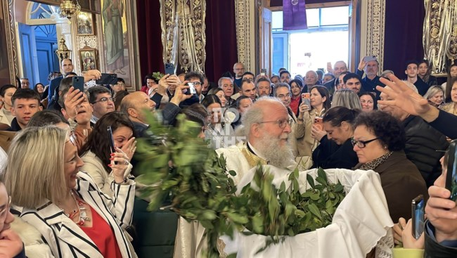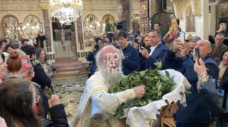 Ο ιερέας σκόρπισε δάφνες, σύμβολα της νίκης και της αιώνιας ζωής, σε ολόκληρο τον ναό. Οι εικόνες ήταν εντυπωσιακές: οι πολυέλαιοι κουνιούνταν σαν από σεισμό και η συγκίνηση κορυφώθηκε, με όλους τους παρευρισκόμενους να μετέχουν ενεργά στην τελετουργία.