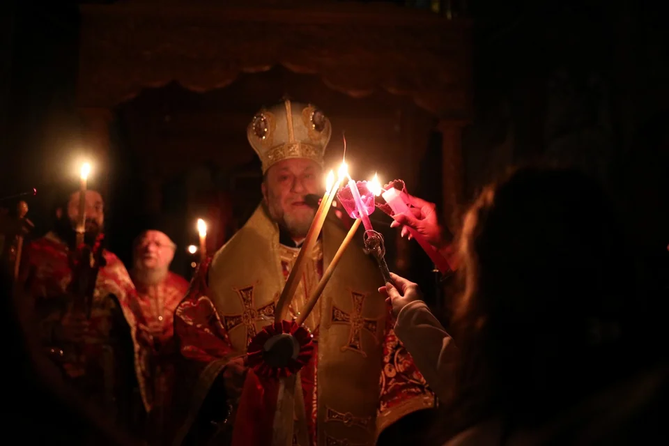 Μέσα σε ένα πανηγυρικό κλίμα (κάτω από μία τεταμένη περίοδο στην περιοχή), πάνω από 2.500 πιστοί μπόρεσαν να μπουν στον χώρο με ειδικό βραχιολάκι που τους έδωσαν οι Αρχές για να παρακολουθήσουν την τελετή αφής του Αγίου Φωτός.