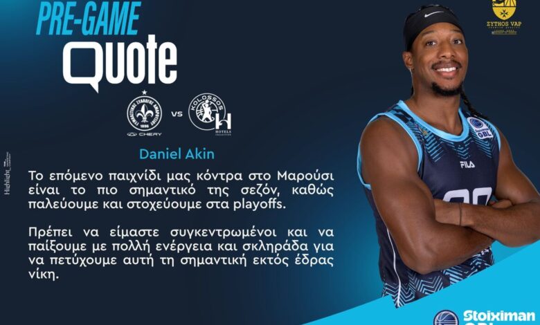 Την άποψή του για την εκτός έδρας αναμέτρηση του Κολοσσού H Hotels Collection απέναντι στον Μαρούσι Chery (18/4, 16:00), για τη 25η αγωνιστική της Stoiximan GBL, μοιράστηκε ο Ντάνιελ Ακίν.