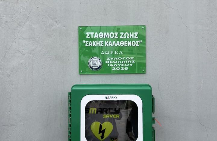 Aυτόματο απινιδωτή τοποθέτησε ο Σύλλογος Νεολαίας Ιαλυσού, εις μνήμην του Σάκη Καλαθενού