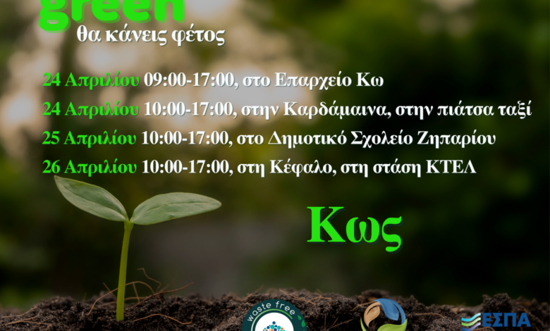 - 24 Απριλίου, ώρες 09:00 – 17:00, στο Επαρχείο Κω