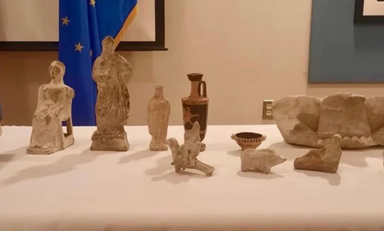 Eίκοσι έξι αρχαία αντικείμενα ελληνικής προέλευσης επαναπατρίζονται από τις ΗΠΑ καθώς παραδόθηκαν στην υπουργό Πολιτισμού Λίνα Μενδώνη, σε ειδική τελετή που πραγματοποιήθηκε στην Πρεσβεία της Ελλάδας στην Ουάσιγκτον.