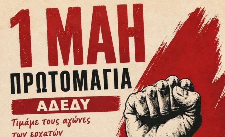 Κάλεσμα του Νομαρχιακού Τμήματος της ΑΔΕΔΥ για την συγκέντρωση της Πρωτομαγιάς στο Εργατικό Κέντρο