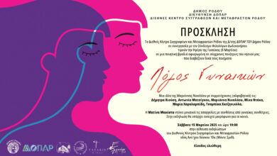 «Ημέρα της Γυναίκας» από το Διεθνές Κέντρο Συγγραφέων και Μεταφραστών Ρόδου της Διεύθυνσης ΔΟΠΑΡ του Δήμου Ρόδου