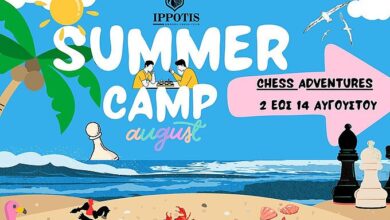 Ο Σκακιστικός Όμιλος «Ιππότης» διοργανώνει ένα ανοιχτό Καλοκαιρινό Camp Σκακιού για όλες τις ηλικίες – από 6 ετών – στις…